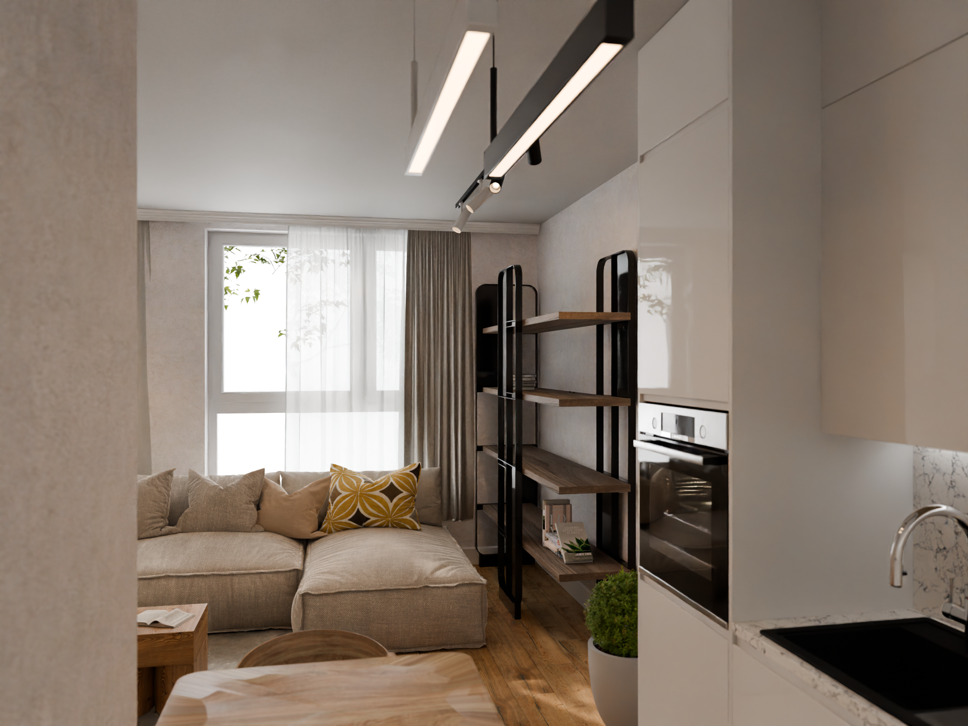 Praktikus elrendezés, napfényes nappali és háló