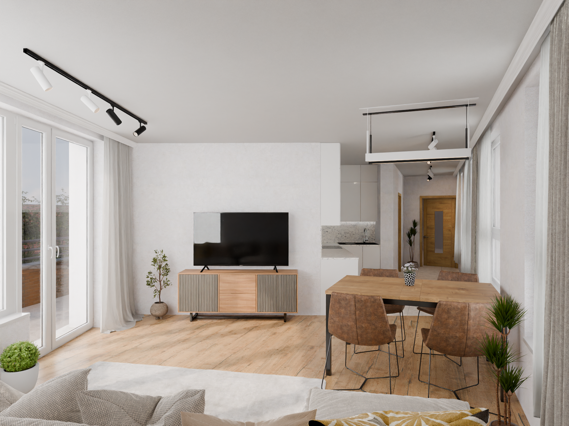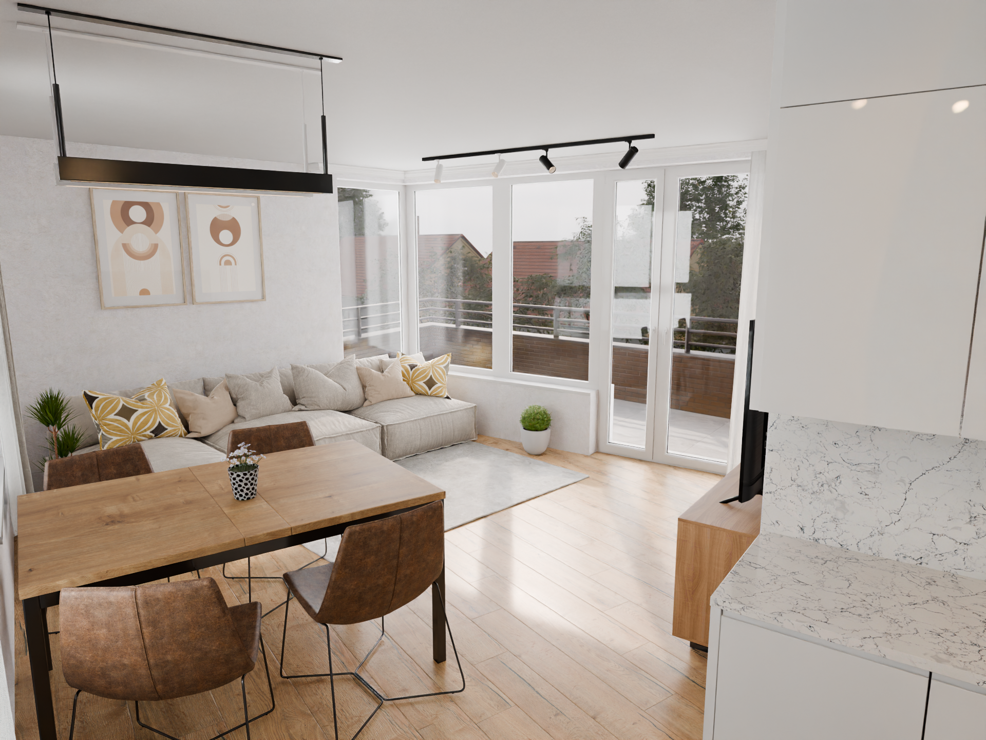 A 20,5 m²-es erkély a nappali meghosszabbításaként szolgál – tökéletes helyszín a reggeli kávéhoz vagy egy nyári vacsorához.