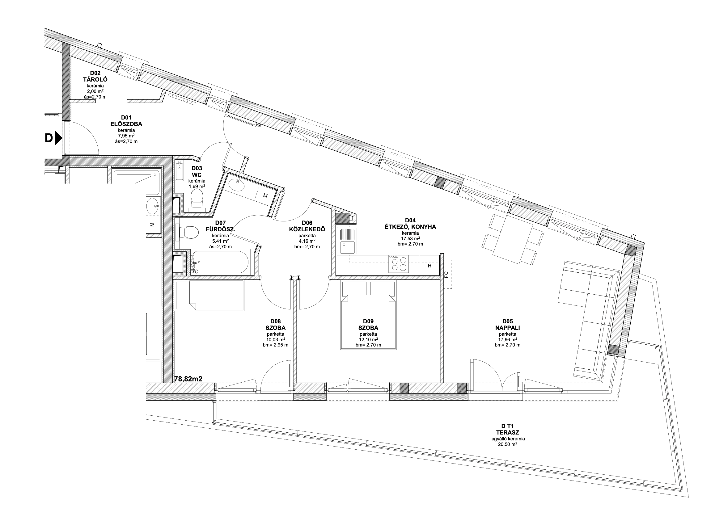 A 79 m2-es lakás három hálószobát, egy nagy nappalit és két kényelmes fürdőszobát kínál, így ideális nagyobb családok számára is.